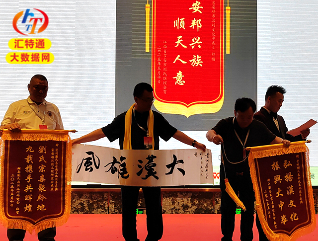 湖南省刘氏总会和浙江省刘氏总会给贵州汉刘文化发展研究中心赠送布匾